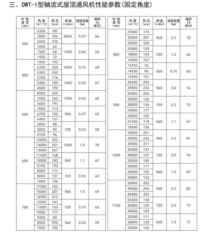 一、DWT-I 系列軸流式屋頂風機