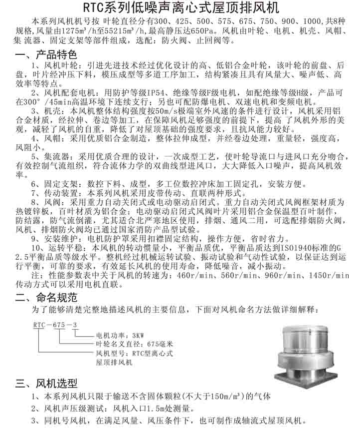 四、RTC 系列鋁制離心式屋頂風(fēng)機(jī)