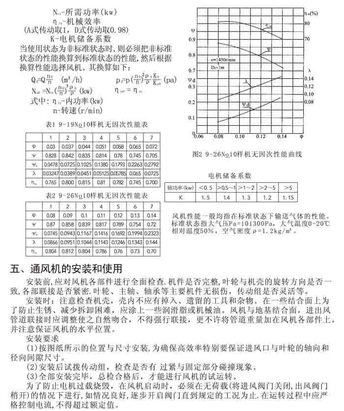 一、風機選用參考、安裝維護使用說明、常見故障分析、訂貨注意事項