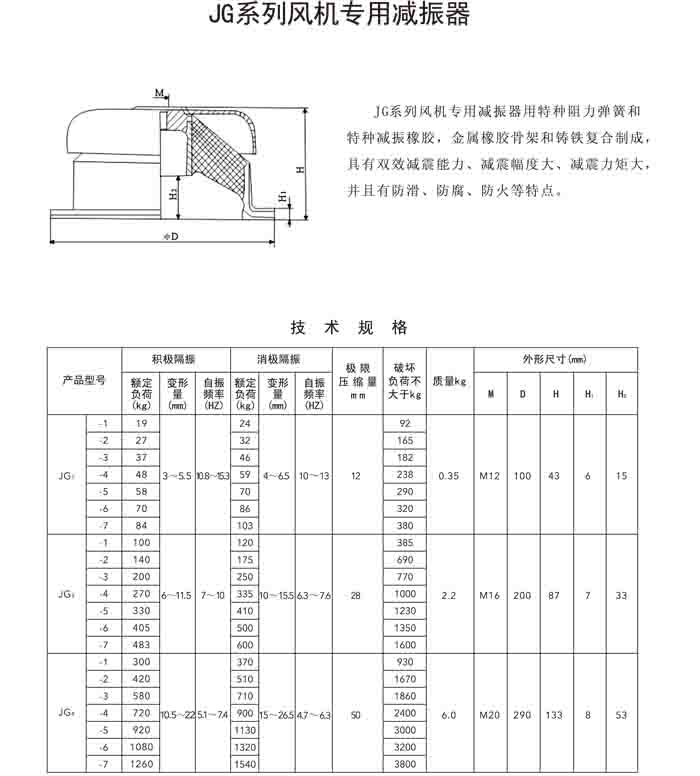 三、FDJ、JG 系列風(fēng)機(jī)專用減振器