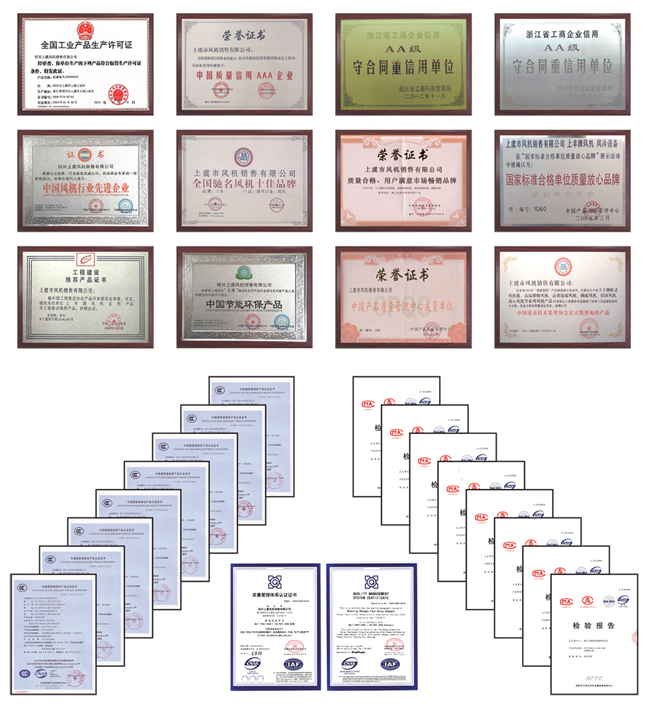 通道風(fēng)機風(fēng)筒支撐裝置專利證書 |